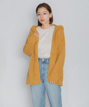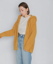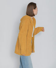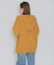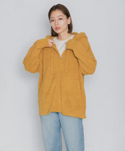 少し大きめサイズのフードがポイントのフルジップタイプのトップス。