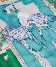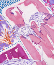 トロピカルな夏をイメージしたフラミンゴを、カラフルなドローイングで表現しました。大振りなタッチと周囲のシャープな幾何柄のコントラストがリズミカルな印象を生み出しています。manipuriでは珍しいアニマルモチーフをご提案します。