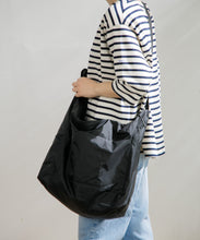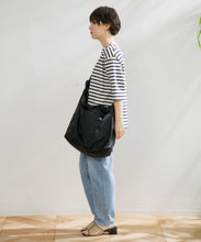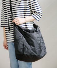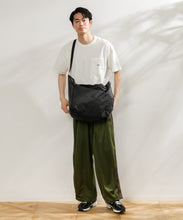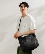 表生地に薄手の210Dナイロンを使用し、軽い感じに仕上げている新作のバッグ。たっぷり荷物が入るサイズになっています。ブランドロゴが型押しされた革のネームを使用しており、サイドにはファスナーポケット、バック本体の中にポケットを搭載しています。表生地は表面に撥水加工、表生地の裏面には AIR TIGHTNESS 加工を施しており、気密性能を上げる為にシリコン樹脂を裏面にコーティングしているので、生地から水の侵入も防いでくれます。ユニセックスでお使いいただけます。