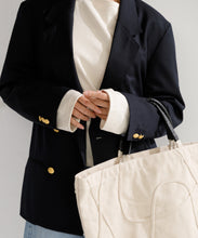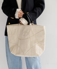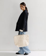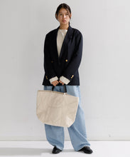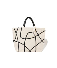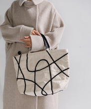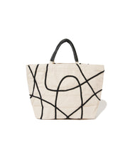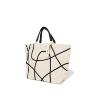 人気のライン柄のトートバッグです。マチがしっかりとしている大きめのサイズなので、普段使いからお買い物まで幅広く使える、使い勝手抜群のアイテム。普段のコーディネートに合わせやすいホワイトとブラックの2色展開です。
