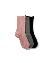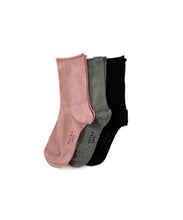 贈り物に最適な女性用ソックス3足パックセットです。おしゃれな金属製のボックス付き。ベーシックでデイリー使いしやすい3足を集めました。耐久性のあるコンパクトコットンを使用しており、長くお使いいただけます。