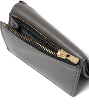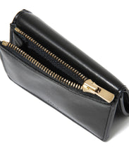 前ポケットに収まるサイズ感が特徴の、三つ折りコンパクトウォレット。外側のファスナーポケットにコインを収納でき、開くと3箇所のカードポケットと札入れがあり、コンパクトさを感じさせない収納力を備えています。