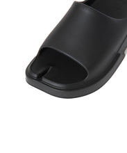 つま先が割れていて足袋のようなデザインが特徴的なサンダル。指先が分かれていることによりクッション性が分散されるので履きやすく、心地よい歩行をサポートします。独自開発した技術で作られた素材を使用しており、軽さはもちろんのこと衝撃緩和と弾力性を兼ね備え、足にかかる負担を減らし、体へのリカバリー効果も期待できます。