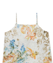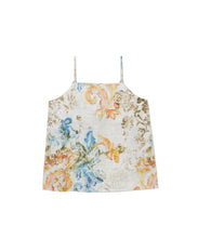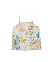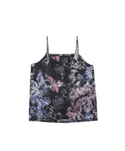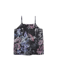 オリエンタルムードな多色使いの花柄キャミソール。ボックスシルエットでタイト過ぎないシルエット。バックスタイルの深めのU字開きとタブ使いが適度な肌見せを演出し、大人の女性にピッタリです。同素材のパンツと合わせてセットアップで着こなすのもおすすめ。1枚でもインナーとしてカーディガンなどと合わせても、マルチに活躍するアイテムです。