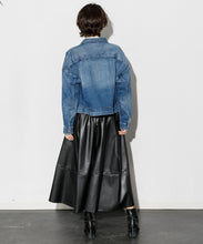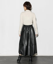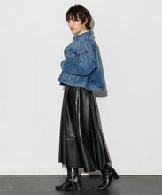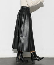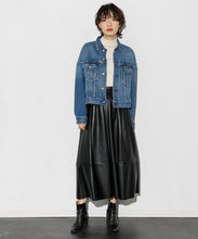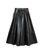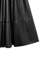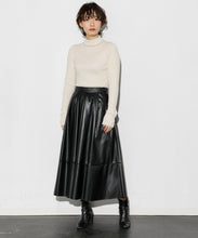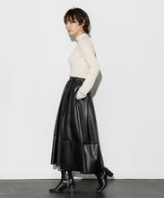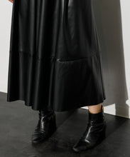 エコレザースカート「Cecily(セシリー)」。ウエスト周りはジャスト設定、裾にかけてAラインのシルエット。イタリアの生地メーカー監修の合皮素材を採用。裏面にジャージー素材をボンディングすることで心地よい着用感となっています。両サイドポケット付、バックにコンシールファスナーがあり使いやすいアイテムです。