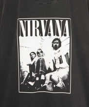 アメリカの伝説的ロックバンド「NIRVANA」のフォトTシャツです。ヴィンテージテイスト漂う雰囲気のある1枚。デニムなどのカジュアルアイテムとの相性抜群です。