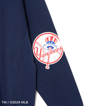 MLB(メジャーリーグベースボール)別注シリーズからスウェットが登場。NEW YORK ヤンキース、LOS ANGELESドジャース、OAKLANDアスレチックスの3球団のロゴを使用したスウェットです。身幅にほどよくゆとりを持たせたシルエット。しっかりと目の詰まっ た裏毛素材を採用し、ヴィンテージスウェットのようなサイドパネルを作ったり、リブの編み地 にもこだわりました。右裾にはバッターマンの刺繍ワッペンをステッチオン。左胸には刺繍を入れ、両袖には球団ロゴをプリントしています。ユニセックスでご着用いただけます。