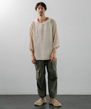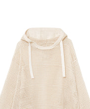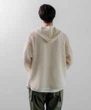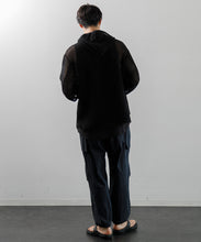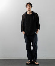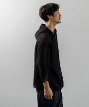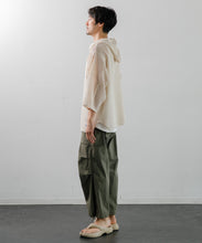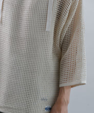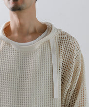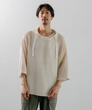 デンマーク軍のインナーシャツで使用されたメッシュがイメージソースとなっている、3/4スリーブのパーカー。刺繍レース機で作成した特徴的なメッシュ生地はどこか粗々しく無骨さもあるメッシュ素材です。ほどよい透け感なので、レイヤー使いでコーディネートの幅が広がります。