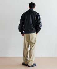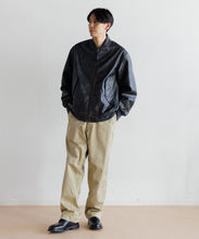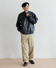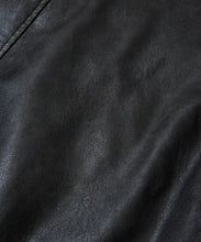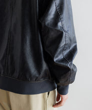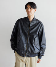 アメリカのフライトジャケットを彷彿させるデイティールを現代のシルエットで再構築したブルゾン。少し丸みを帯びたシルエットが、ほどよい柔らかさと抜け感を演出します。素材にはヴィーガンレザーを使用し、仕上げに特殊なヴィンテージ加工を施すことで趣のある表情豊かな素材感に仕上げました。