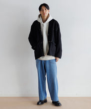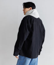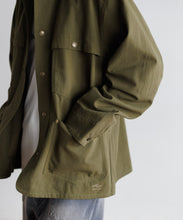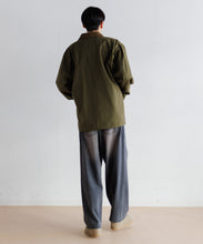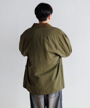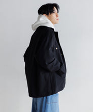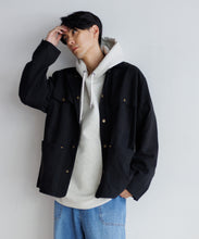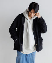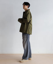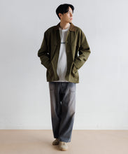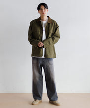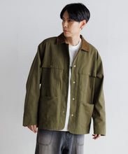 アメリカの30年代のロガージャケットを彷彿させるディテールを持つ、モダンなシルエットのシャツジャケット。特徴的な切り替えフラップのポケットが目を引きます。柔らかなダック生地を使用し、適度な軽さとタフさのバランスが魅力です。歴史を感じさせつつも、現代のスタイルにアップデートされたアイテムで、無骨な雰囲気ながらもスマートに着こなせるアイテムです。