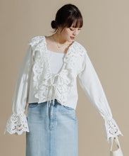 オリエンタルな柄感のデザイン性の高いカットワーク刺繍を贅沢に施した、シンプルなコーデに重ねるだけでグッと華やかなコーデになる羽織ブラウス。厚めのコットンツイル素材で、透けにく、インドならではの柔らかな風合いが魅力のキュートでカジュアルな存在感抜群のアイテム。同じ素材のスカート付きパンツと併せて、ヴィンテージムード漂う着こなしに。