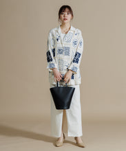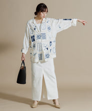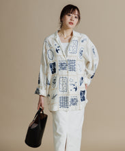 とろみのあるテンセル100%のシャツに、パッチワーク風14柄の刺繍をふんだんにあしらったシャツ。ほどよい肉感に落ち感のある素材で、マシーン刺繍の手法を何種類も入れ雰囲気のある見え方に。1枚で映え、シンプルなボトムスに合わせるだけでこなれた印象に仕上げてくれる一枚です。ユニセックスで着用いただけます。