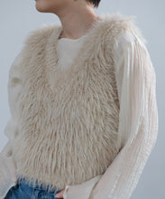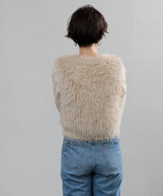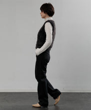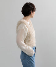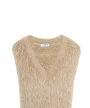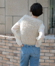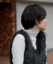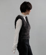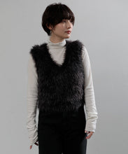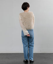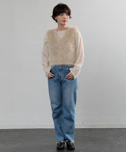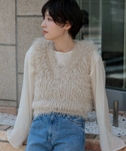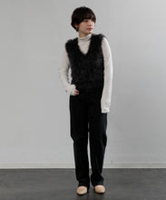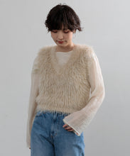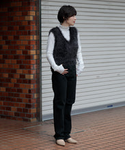 毛足の長いフェザーヤーンで表情たっぷりに仕上げたVネックベスト。今シーズントレンドのフェザーヤーン素材で、柔らかく肌触りが心地よく、目を惹く1枚です。