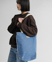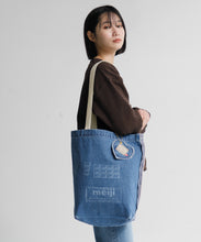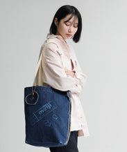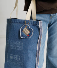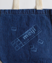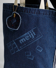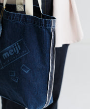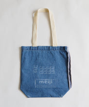明治ミルクチョコレート製造で生まれるカカオハスクを織り込んだ「カカオデニム」素材のバッグ。レーザー加工によるミルクチョコデザインが目を引き、肩掛けしやすい紐の長さにもこだわりました。ブルーとライトブルーの2色展開です。