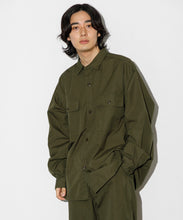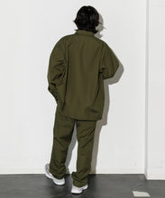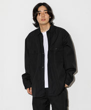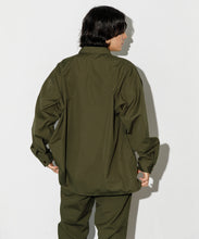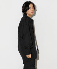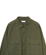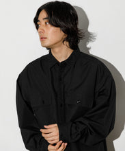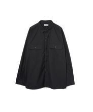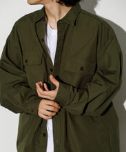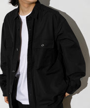 アウターとしても着用できるゆったりめのシルエットのシャツジャケット。ワークシャツをデザインベースにしたパッチ&フラップポケットと環縫い仕様で、細部にまでこだわった一枚です。ポリエステル芯に綿糸を巻いたカバーリングコアヤーンを使用したオリジナルのウェザー素材を使用しています。