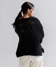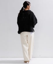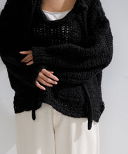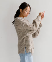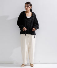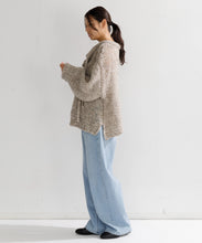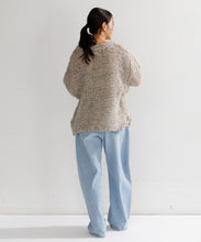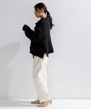 丸編みのドロストを使い甘く編んだプルオーバー。ニットはシワになりにくく持ち運びの楽さが強みなので、秋口はアウター的存在として、冬にはインナーに軽いダウンを着用してコート代わりにもおすすめで、いろいろな着方を楽しめます。