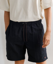 ウエストはスピンドル付きのイージー仕様で、着脱も快適。ポケットは手が入れやすいスラッシュポケットを採用し、内側はメッシュ仕立てにすることで通気性と水抜けの機能も備えています。デイリー使いから、アウトドアや水辺のアクティビティなど、さまざまなシーンで活躍する万能ショーツです。