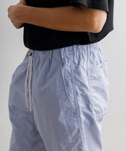 ハリとコシのあるナイロンタッサー素材を使用した、夏にぴったりの軽量イージーパンツ。表面に凹凸感があるため肌離れが良く、真夏でも快適に着用できるドライな質感が特長です。撥水加工に加えて速乾性にも優れており、プールや海、川遊びなどのレジャーシーンにも対応。インナーを合わせればスイムウェアとしても活用できる水陸両用仕様で、1本あれば幅広いシーンで頼れるアイテムです。