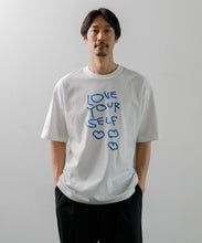様々なアーティストやブランドとのコラボグッズのデザイン、テレビ番組などのロゴやキャラクターのデザインなどを手がけるイラストレーターOgawa NatsumiのイラストTシャツ。手描き風のメッセージ「LOVE YOURSELF」とハートモチーフが並ぶ、ポジティブなメッセージをフロントに大きく配置。バックにはラフな線で描かれたアートピースのようなプリントが印象的な一枚。鮮やかな色使いと自由なタッチでスタイリングにアクセントをプラスします。カジュアル感が強い空紡糸を用いた16/OE天竺生地を使用し、ボディラインの出にくい肉感がある生地はデイリー使いにピッタリ。男女問わず着用いただけます。