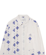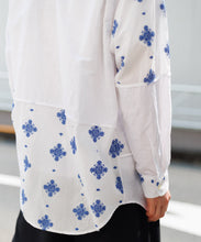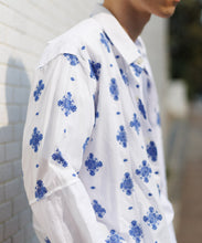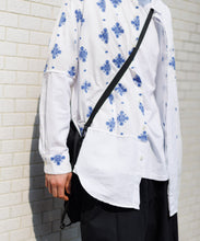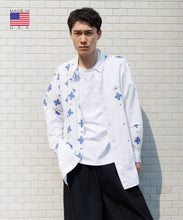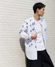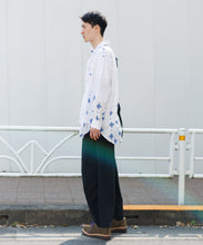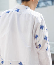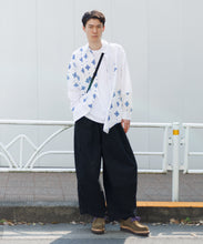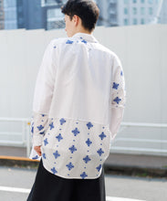 小ぶりな襟型と比翼のフロント、表側に見えるステッチを極力抑えたミニマムでドレッシーなデザインのショートカラーシャツ。身頃や袖に生地の切り替えを施した、ユニークなコンボ仕様になっています。