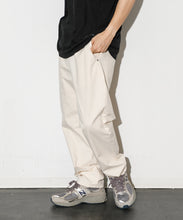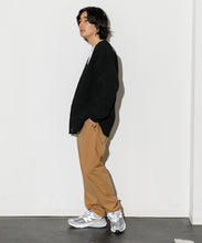 スピンドル(紐)仕様に比べ、幅広のベルト部は強い保持力を発揮するので、履き心地も向上。調整範囲は、左右のアジャスターで、前部・後部と独立して調整でき、前後の調整具合で穿きこなしの雰囲気を変えることも可能です。シルエットはもも周りには適度なゆとりを持たせながら、ヒザからスソにかけて徐々に細くなるテーパードシルエット。キレイめにもカジュアルな着こなしにも対応します。