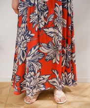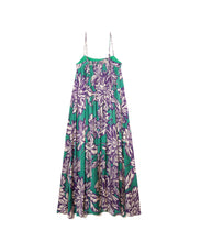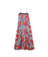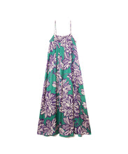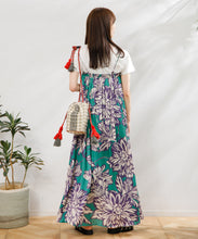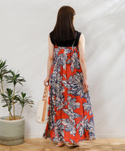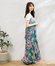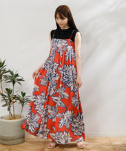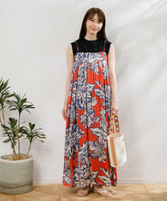 カラフルで印象的な花柄が特徴のサンドレスです。生地をたっぷりと使ったボリューミーなデザインで、歩くたびに動きのあるAラインの広がるシルエットが魅力的です。肩のストラップは長さ調整可能。裏地付きで安心して着ていただけます。夏のお出かけやリゾートにぴったりのアイテムです。