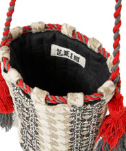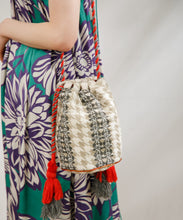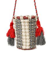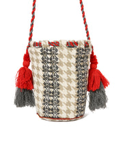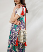 ころんとしたまるいシルエットが印象的な巾着型のバッグ。紐には、簡単に長さ調整できるスライダーが付いており、肩がけ・斜めがけ・手持ちなど、いろんな使い方が楽しめます。スマートフォンと財布、小物を入れるのにちょうどいいサイズ感で、日常使いに最適です。大胆なタッセルが目を惹くアイテムです。