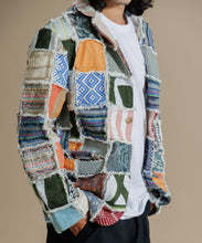 インドで生産された独特なパッチワーク生地を使用したテーラードジャケットです。テーラードジャケットの良さを生かしつつ、少しゆったりとしたサイズ感になっており、カジュアルな着こなしに落とし込みやすく仕上げました。クラフト感あふれる素材を使用することによって、パンチが効いた1枚になっています。