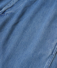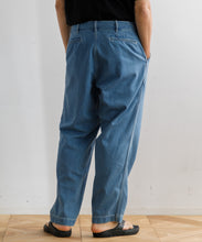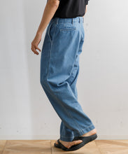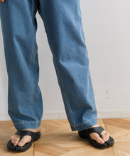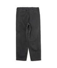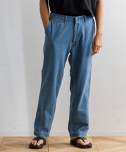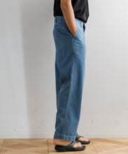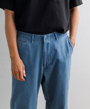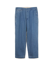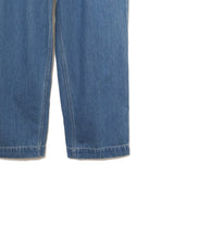 40年代のU.S. Armyチノトラウザーズをベースにデザインされた、ワイドテーパードカットのデニムパンツ。リサイクルポリエステルを芯に、太番手のムラ糸コットンで覆った糸を独自に開発し、ロープ染色で仕上げたnanamicaオリジナルのハイブリッドデニムを使用。軽量で乾きやすく、耐久性にも優れながら、自然な経年変化も楽しめる素材です。フロントはファスナー開き、後ポケットは隠しドットボタン仕様。股下には脚の可動域を広げるマチ付きで、動きやすさも追求した一本です。