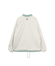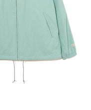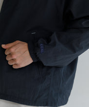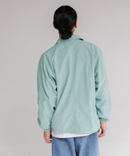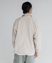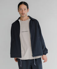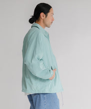 リバーシブル仕様のコーチジャケット。ゆとりのあるオーバーサイズフィットです。表地には非フッ素系はっ水加工を施したリサイクルナイロンタッサーを、裏地にはドライなタッチと乾きやすさが特徴のリサイクルポリエステル天竺を使用おり、機能性も魅力。身頃と袖が繋がった特徴的なデザインにより、肩周りの可動域を広げ快適な着心地。裾にはオリジナルで作成したシートコードを使用しています。