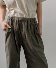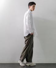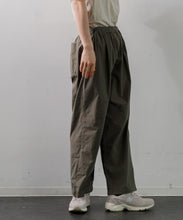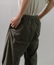 2タックのイージーパンツです。バックゴムウエストにドローコードを通したイージー仕様になっており、リラックスフィットで履き心地も抜群。製品染めを施したコットンポプリンで、薄手で軽量のためストレスフリーな1枚です。ユニセックスで着用いただけます。
