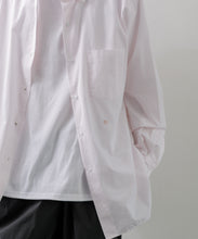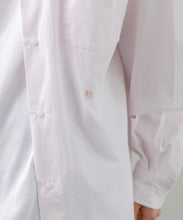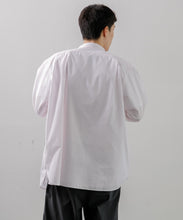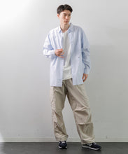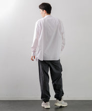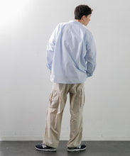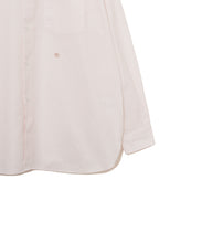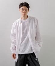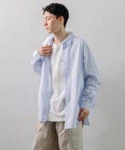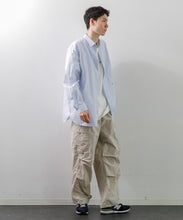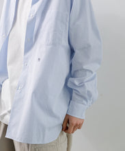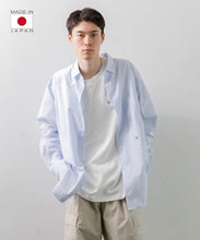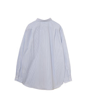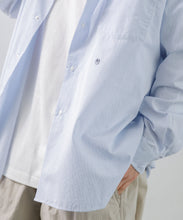フロントの5つボタンや裾のラウンドが特徴的なヴィンテージシャツをデザインベースとした、レギュラーカラーストライプシャツ。ゆったりとしたリラックスフィット。ポリエステルの外側をオーガニックコットンで覆った3層構造のカバーリングコアヤーンを使用し、高密度に織り上げたブロードクロスを製作。コットンの肌触りに、軽量且つ耐久性があり乾きやすいという機能性をプラスしたnanamicaオリジナルのハイブリッド素材を使用しています。ボタンはすべて飾りボタンホール入りのドットボタン仕様で、フロントにnanamicaロゴ刺繍を施しています。
