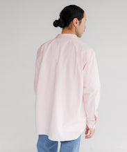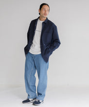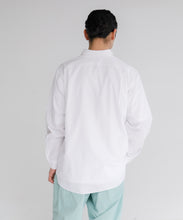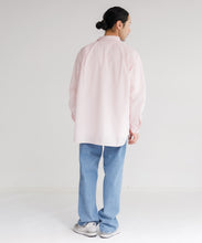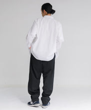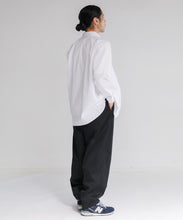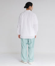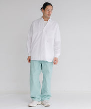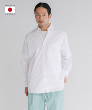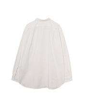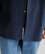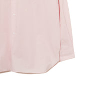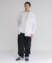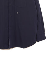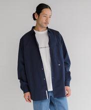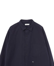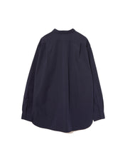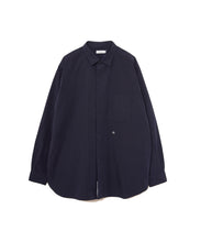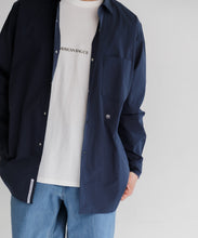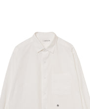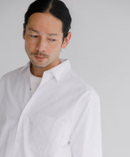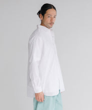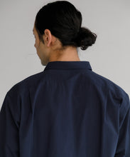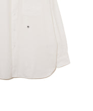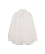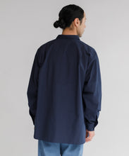 フロントの5つボタンや裾のラウンドが特徴的なヴィンテージシャツをデザインベースとした、レギュラーカラーシャツ。ゆったりとしたリラックスフィット。ポリエステルの外側をオーガニックコットンで覆った3層構造のカバーリングコアヤーンを使用し、高密度に織り上げたブロードクロスを製作。コットンの肌触りに、軽量且つ耐久性があり乾きやすいという機能性をプラスしたnanamicaオリジナルのハイブリッド素材を使用しています。ボタンはすべて飾りボタンホール入りのドットボタン仕様で、フロントにnanamicaロゴ刺繍を施しています。