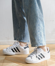 クラシックなラウンドシェルトゥが目印の、アディダスの名作。アイコニックなアディダス スーパースターシューズがカムバック。スポーツとストリートスタイルが歩み寄った50年の歴史を感じるローカットスニーカーです。滑らかなレザーアッパーとラバーシェルトゥは、バスケットボールコートと街のストリートの記憶を蘇らせます。パッド入りのシュータンと履き口が一日中快適な履き心地をもたらし、ラバーアウトソールパターンがグリップ力を発揮します。バスケや、街に繰り出すときにもぴったりの、汎用性の高いレトロな雰囲気のクラシックスタイルの一足です。ユニセックスで着用いただけます。