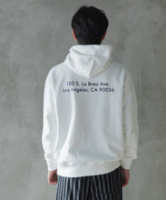 AMERICAN RAG CIEとBAYFLOWのスペシャルコラボレーションラインから、ロサンゼルスのスーベニアをイメージしたスウェットプルオーバーが登場。AMERICAN RAG CIEのLA本店のアドレスをバックにプリントし、シンプルながらも存在感のある一着に仕上げました。左袖には「HOODIE」のネームをプリントし、さりげない遊び心をプラス。ドライタッチな質感ときれいな目面が特徴の素材です。