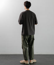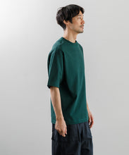 ワイドシルエットでルーズな印象。コットン100%の太番手糸を度詰めに編み込んだヘビーウェイトジャージーを使用しています。程よい張り感と膨らみが特徴で、着るたびに肌になじみ、時間と共に味わい深い経年変化を楽しめる素材です。