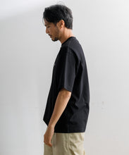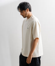 ワイドシルエットで3本針のステッチと胸下のブランドロゴ刺繍がアクセントのTシャツです。通常の天竺素材よりもしっかりとしたHEAVY WEIGHT JERSEYで綺麗なボックスシルエットをキープできます。コットン100%の太番手糸を度詰めに編んだヘビーウェイトジャージーで、程よい張り感と膨らみが特徴。着込むほどに肌になじみ、経年変化も楽しめる素材です。