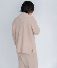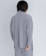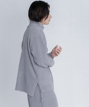 前後差を付けた裾にサイドスリットを入れて身頃はスッキリしたシルエットになっています。ストレッチ性の高いストレスフリーな素材で、ゆとりを持たせたサイズなのでリラックス感があり、ゆったりと着用いただけます。