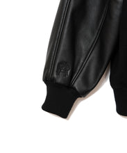 袖革は、軽く馴染みが良く着用しやすいラムレザーを使用しています。左袖口にはARCを重ねた袖革同色のワンポイントロゴ刺繍を配しています。