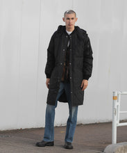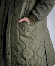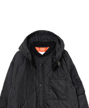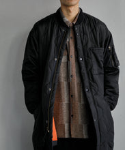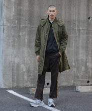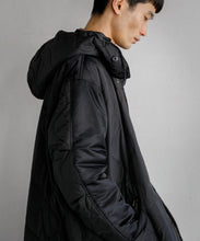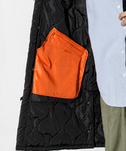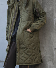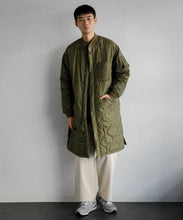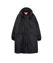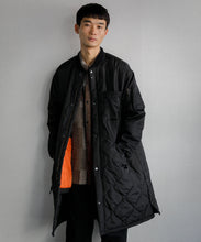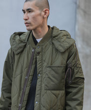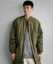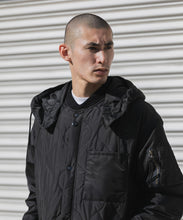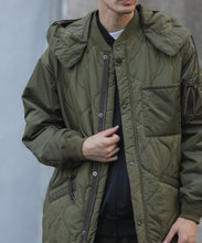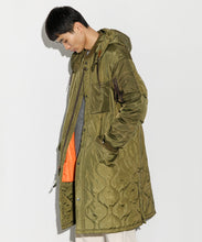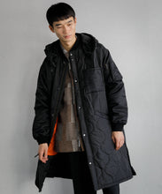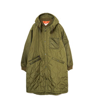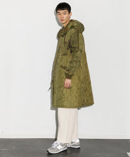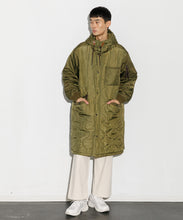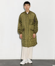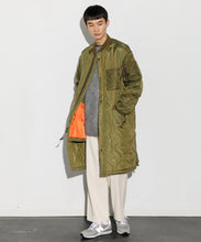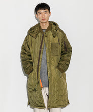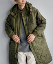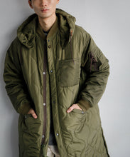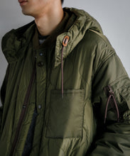 アメリカ海軍のCWU-9Pライナージャケットを元に軽量でオーバーサイズ気味にアレンジしたロングジャケット。フードはボタンで着脱可能で、気分によって表情を変えられます。表地にはMA-1などのフライトジャケットに使われるナイロンツイル素材とポリエステルのリップストップ素材を、パーツによって使い分けミックスしています。ミリタリープロダクトに知見の深いGOLDEN MILLSとAMERICAN RAG CIEがコラボレーションすることにより、他にはないギミック&エッセンスが加わった、こだわりのミリタリーアウターです。