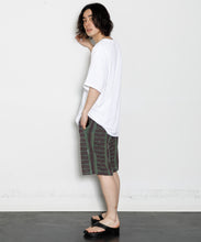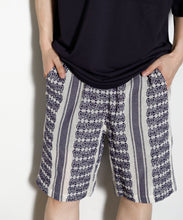 パピヨン(蝶)の模様が連続する、エスニックなムードの素材を使用したアイテム。ストリングウエストとゆとりのあるシルエットによるイージーな履き心地が魅力のバスケットボールショーツです。暑いシーズンでも涼しく快適に着用できるアイテムとなっています。