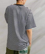オーガニックコットンを使用したボーダー柄の半袖Tシャツ。天然素材ならではの自然な風合いと肌触りのよさが特長です。左胸に小さな刺繍ロゴを配置。UVプロテクト(UPF50+、紫外線カット率95%以上)機能付き。レトロな印象に仕上げた、アウトドアからタウンユースまで日常のさまざまなシーンで着こなせる1着です。