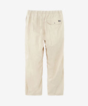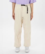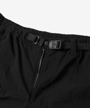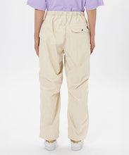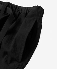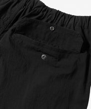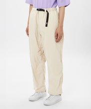 穿きやすいやや太めのシルエットで、ウエストはウェビングベルト仕様。右ヒップにはフラップポケットがつき、フラップのピスネームがデザインのアクセントにもなっています。リサイクルナイロン(リサイクル原料率50%)を使用した、環境に配慮した商品です。