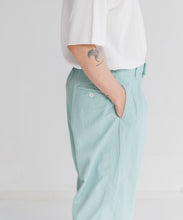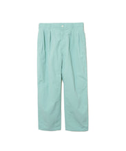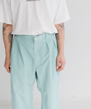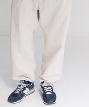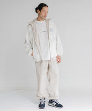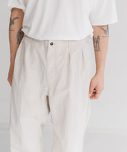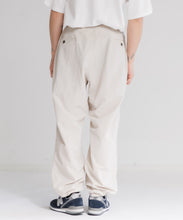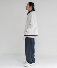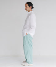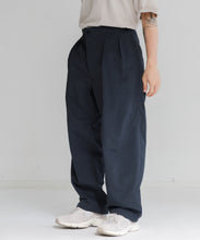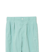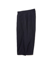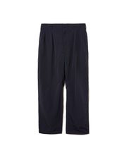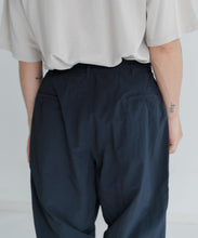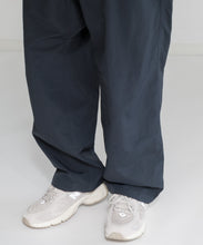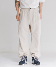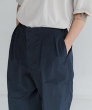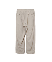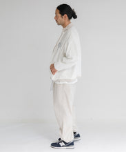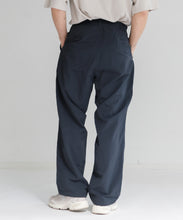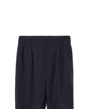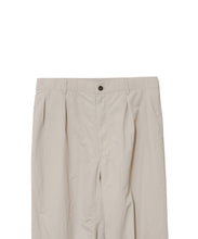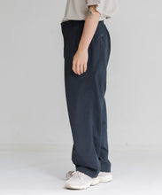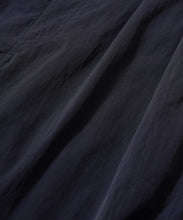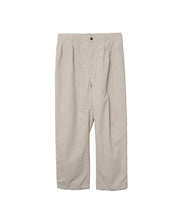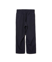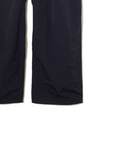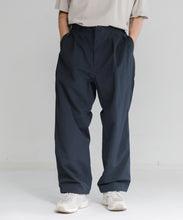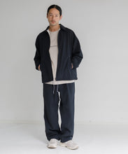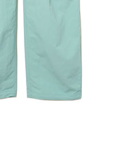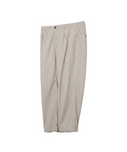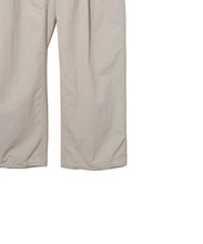 ワイドストレートカットのナイロンタックパンツ。アメリカントラッドの2タックドレスパンツをベースにデザイン。裾にいれたドローコードにより風の侵入を軽減しシルエットの変化も調整可能で、股下には脚の可動域を広げるマチ付きです。ウエストにはオリジナルで作成したシートコードを使用。非フッ素系はっ水加工を施したリサイクルナイロンタッサーを使用しており、機能性も兼ね備えた一枚です。