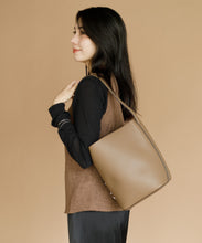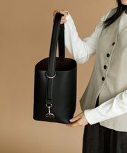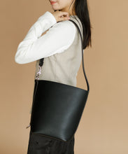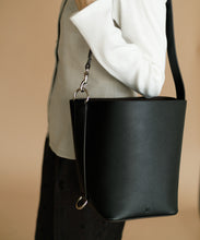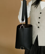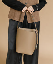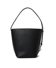 たっぷり大容量のバケツ型バッグです。25AW新型で、MyuQ定番の「JUNO」をベースにサイズを小さくした3WAYタイプ。シルエットは丸みを帯びながらも底は正方形のため、荷物の収納もしやすくお仕事やちょっとしたお出かけにも充分なサイズ感。ショルダーの長さはフックをDカンにかけることで変更できるので、約55cmもしくは75cmの長さ調節が可能です。シーズンレスで使いやすいアイテムです。
