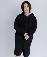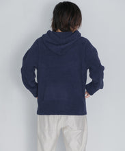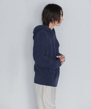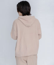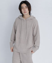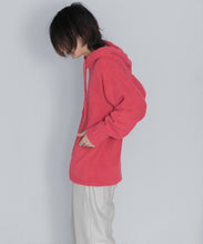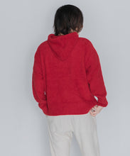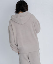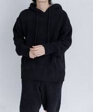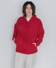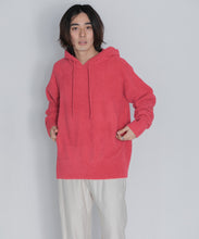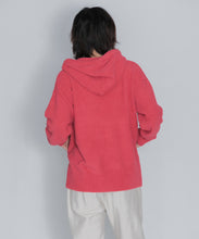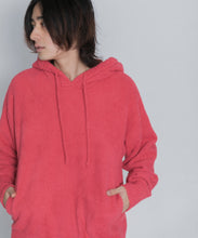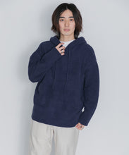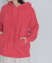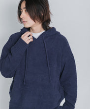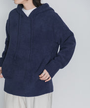 少し大きめサイズのフードがポイントのフーディタイプのトップス。