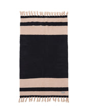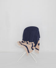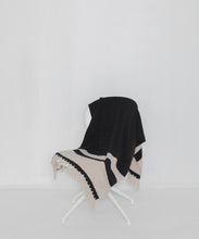 メインボディはバイカラーのボーダーで、両端にはフリンジをあしらいラグジュアリーな雰囲気もある一枚。
