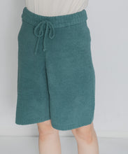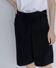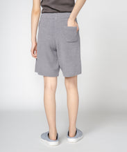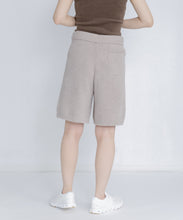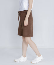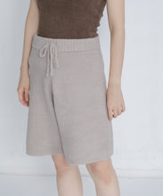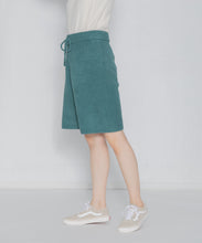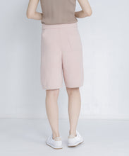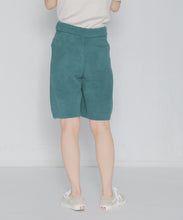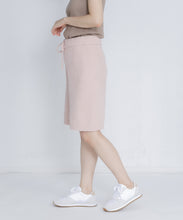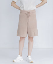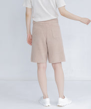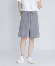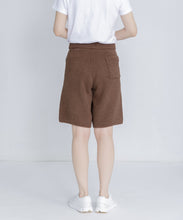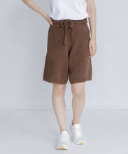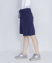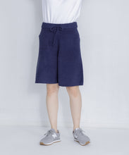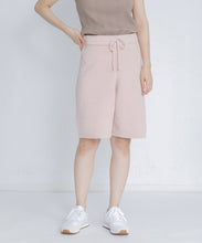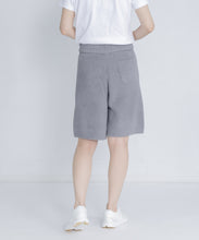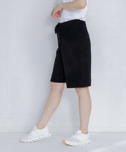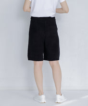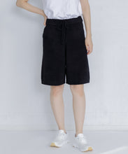 ウエストゴム+スピンドルのイージー仕様で、らくちんな着用感、膝丈設定のワイドフィットなハーフパンツです。
