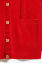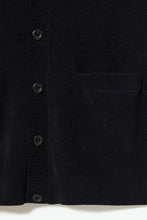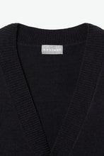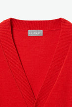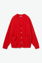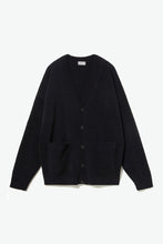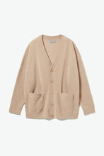 オーバーサイズのVカーディガンはオリジナルロゴの入ったウッドボタンをフロントに、ウエストにはポケットを配置しています。