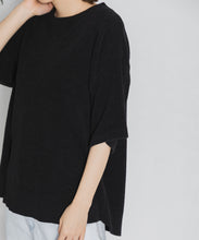 ボディは全体的にゆとりを持たせたリラックスフィットで、着用するとその軽い着心地と柔らかな素材感を感じていただけます。